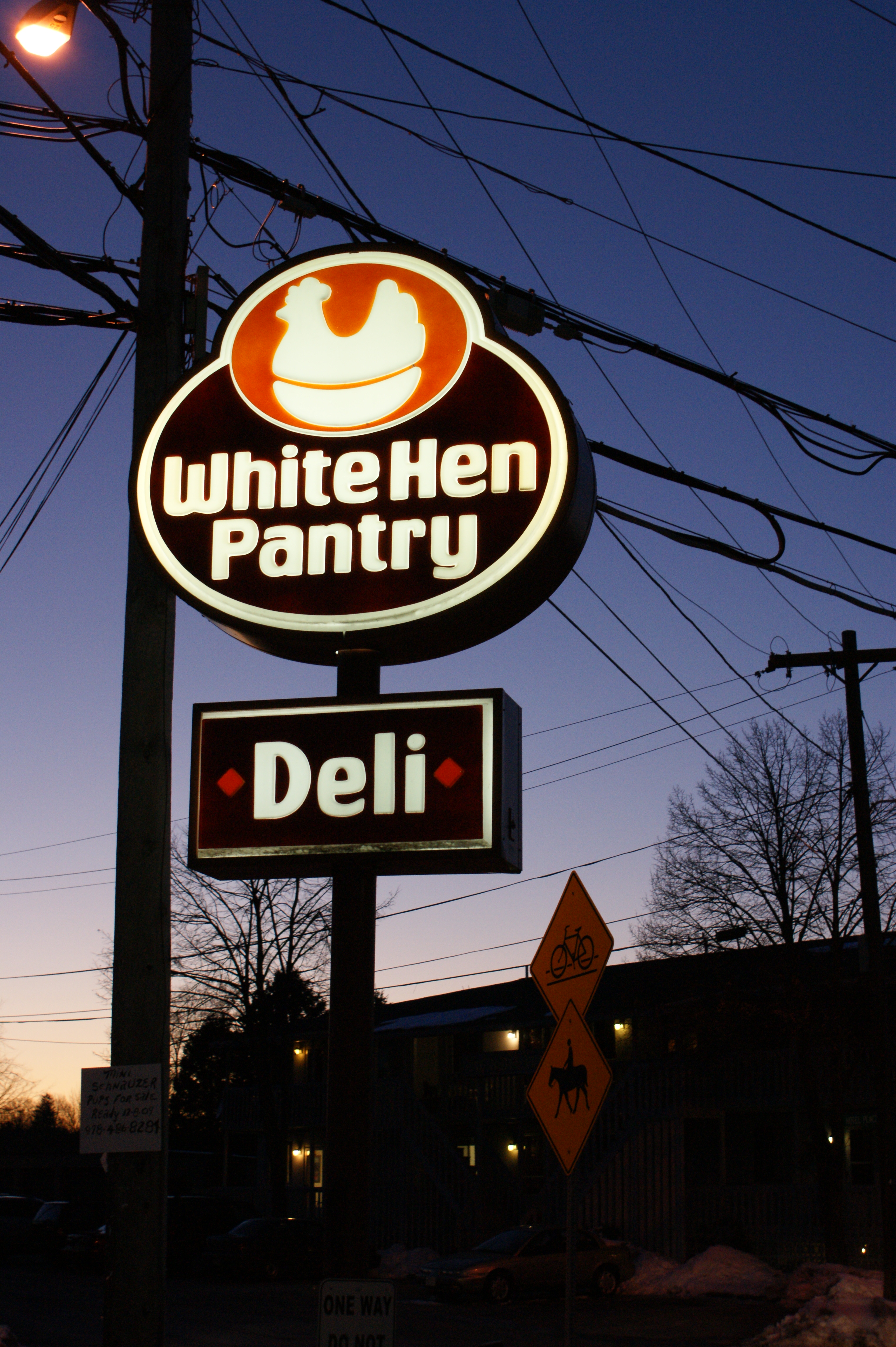 I can’t really explain why I like this photograph except to say that there is so much going on with color and line and shape and content. There’s just a lot of information there set against a spectacular blue dusk. Taken in the rural community of Pepperell, Massachusetts, White Hen stores remind me of the city, and I was drawn to an urban image in a country setting. But horse crossing and hand-written schnauzer pup signs to tip you off that this is not Boston, after all.
