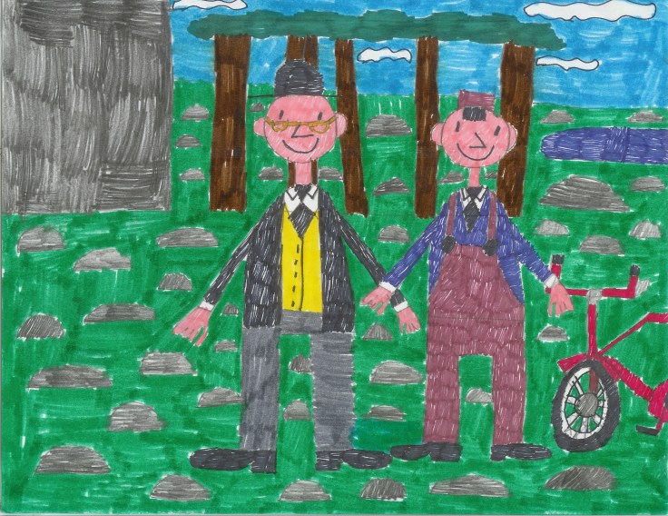 The world is full of artists who do other things so that they can pursue their art on their own time. So few are able to fill their days and their bank accounts by making art. And our boy is what people would call an outsider artist, pursuing what is, for now, a narrow, if vibrant, aesthetic that is not uncommon in people on the autism spectrum. It has a childlike quality joined with a certain kind of exactitude that makes it appealing but not necessarily marketable. And as much as that would be wonderful for him, it is the satisfying process of drawing and completing that we hope to preserve throughout his life; for every artist it is as much about the act of producing a bit of art as it is about having it when it’s finished. Whether one works for days, months or years on a piece or is compelled to finish it in one sitting, the worst thing that can happen is to stop creating altogether.