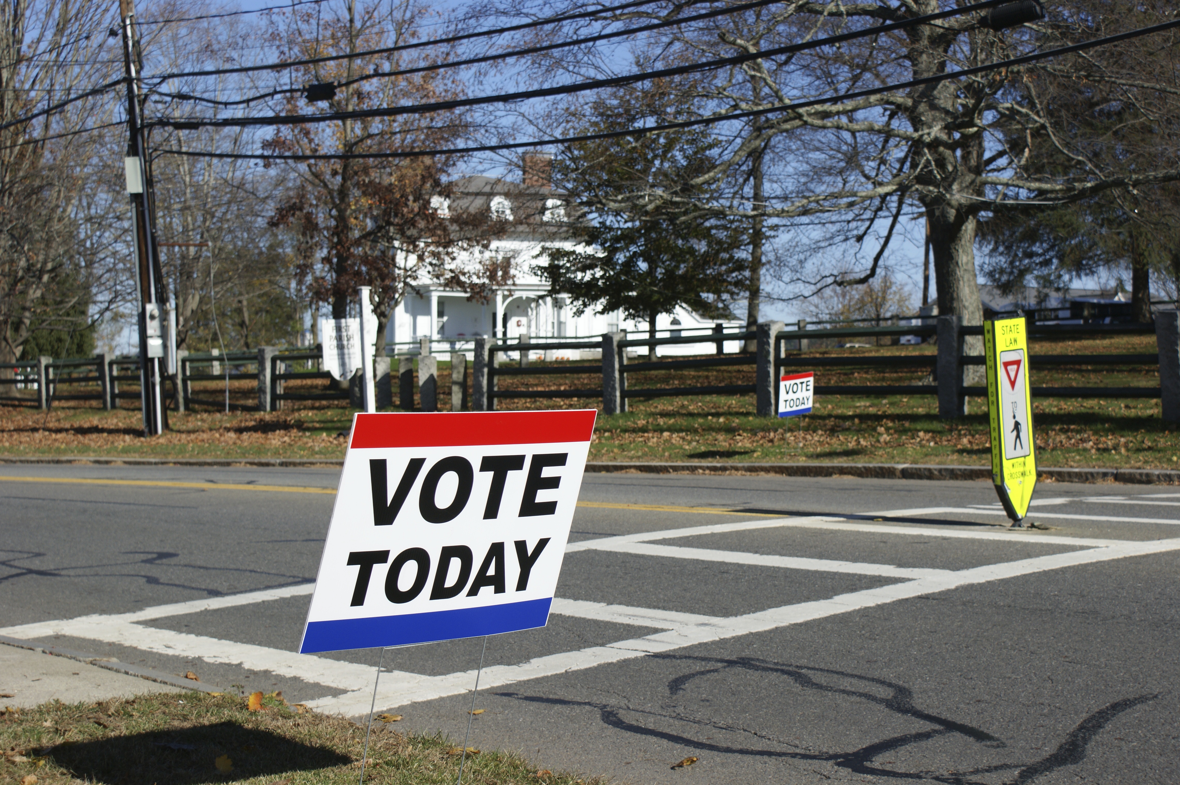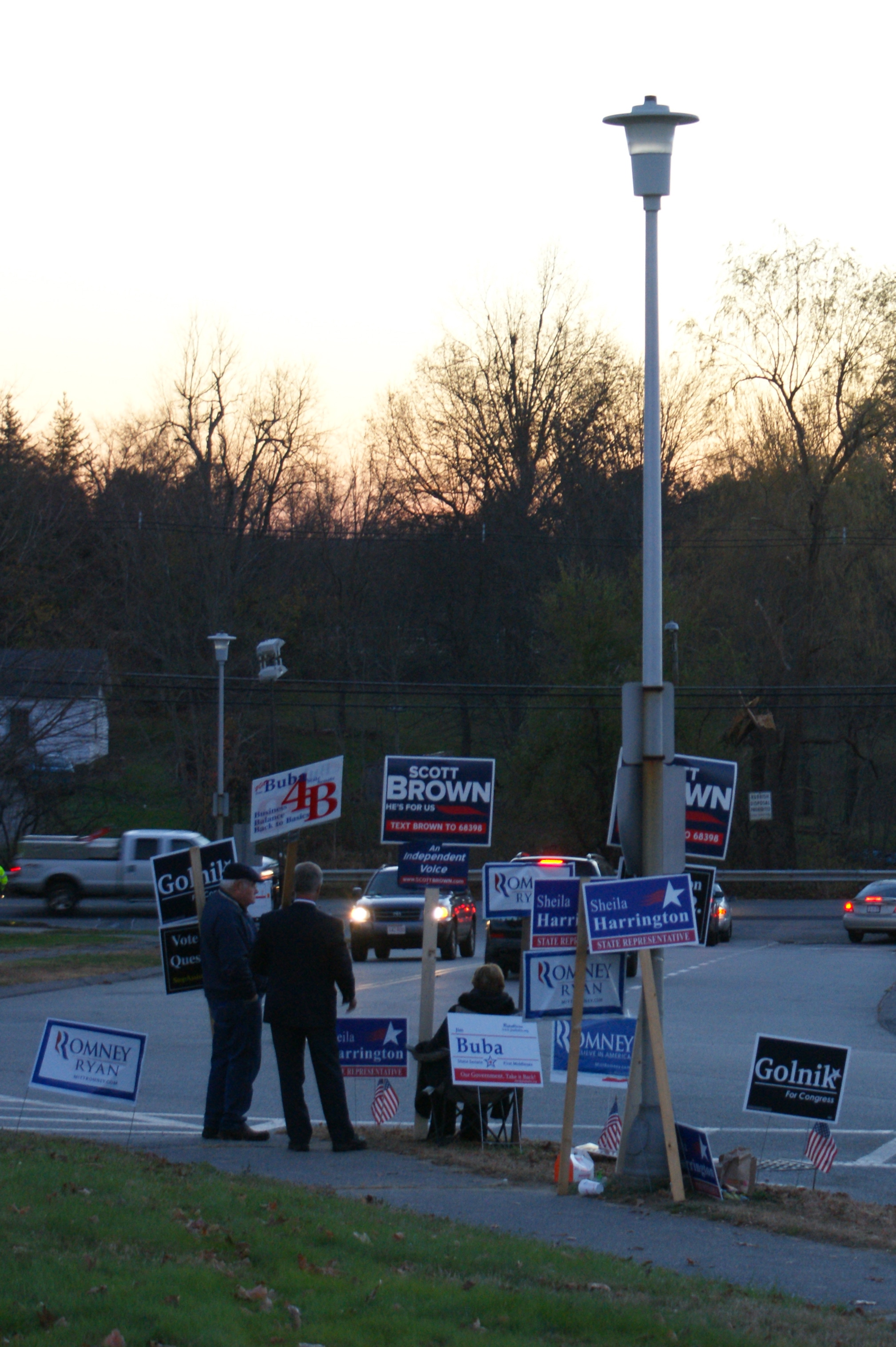 Out on the main road, Trump supporters dominated the entrance to the polling place. Again, Hillary won the town and the state, but you’d never know it from the signs.