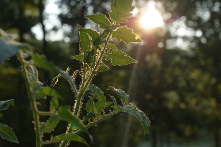 We have a sweet children’s book called First Tomato, in which a young bunny picks the first ripe tomato and her mother makes her fresh tomato soup. Only after downloading this photo did I notice that the morning light reveals tiny spiderwebs on the tomato plants, a harbinger of Halloween. Taken just a few days ago, it already harkens back to seemingly distant, definitely brighter summer days, and I am hoping that the remaining tomatoes will ripen before the frost arrives. We wait all through June and July and into August for that first tomato, but we never can be sure when we will eat the last, finding sometimes that the days have gotten too short and we have waited too long.
