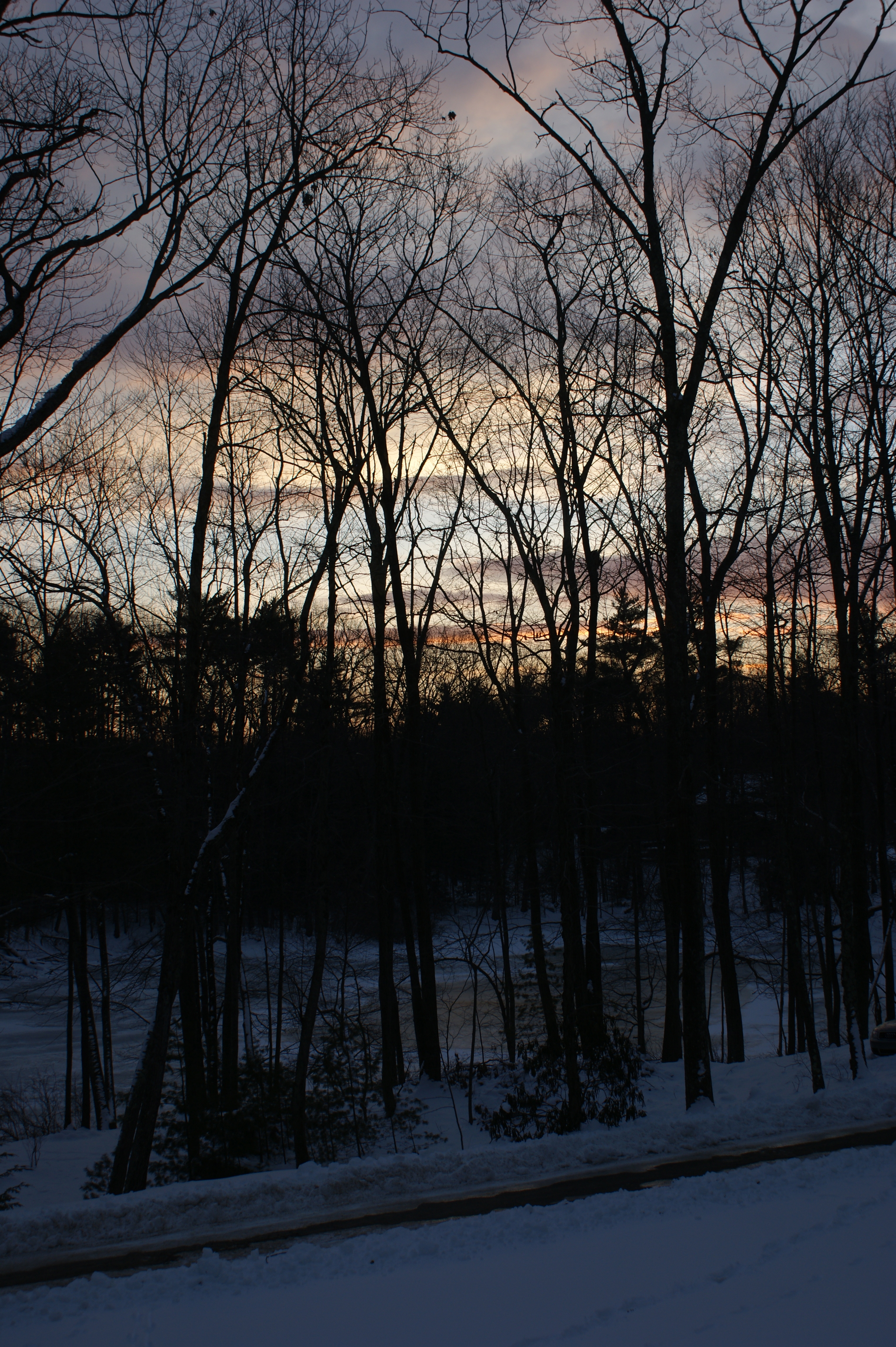 After all of my hand wringing yesterday afternoon, perspective arrived in the evening. After a patchy, overcast weather all day, a thin stripe of sunshine lit the trees across the pond followed by a pink sky, promising a lovely day today.