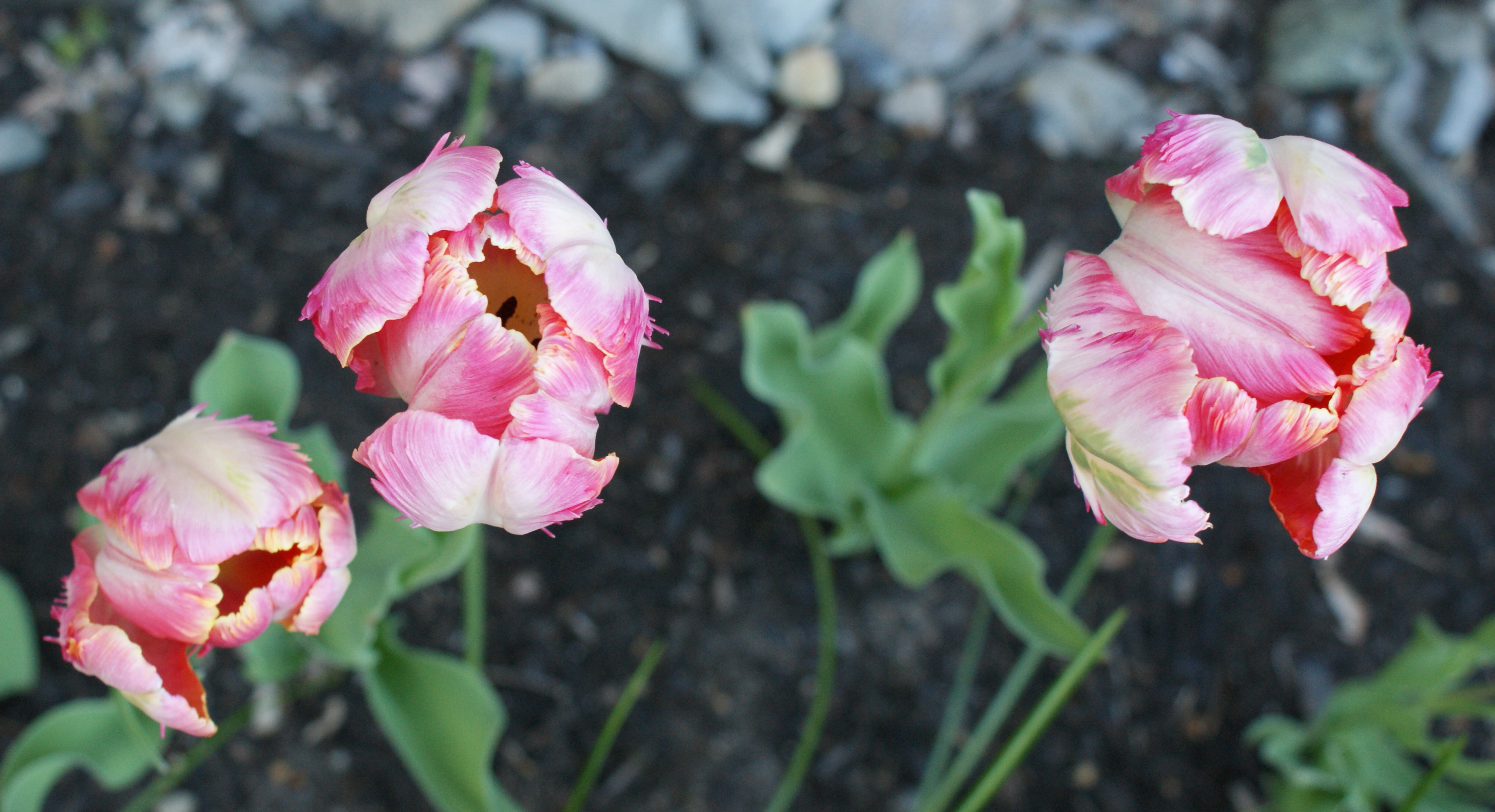The creeping phlox (first lavender, then pink) and candy tuft are next, and I am glad to see they are making their way around the garden lamps and the tulips because I much prefer them to mulch as a backdrop. My goal is for the perennials and ground covers to fill in so completely that someday we will only need to mulch around the maple. Now that I think about that, it might spell an earlier demise for the tulips. I will have to look it up.