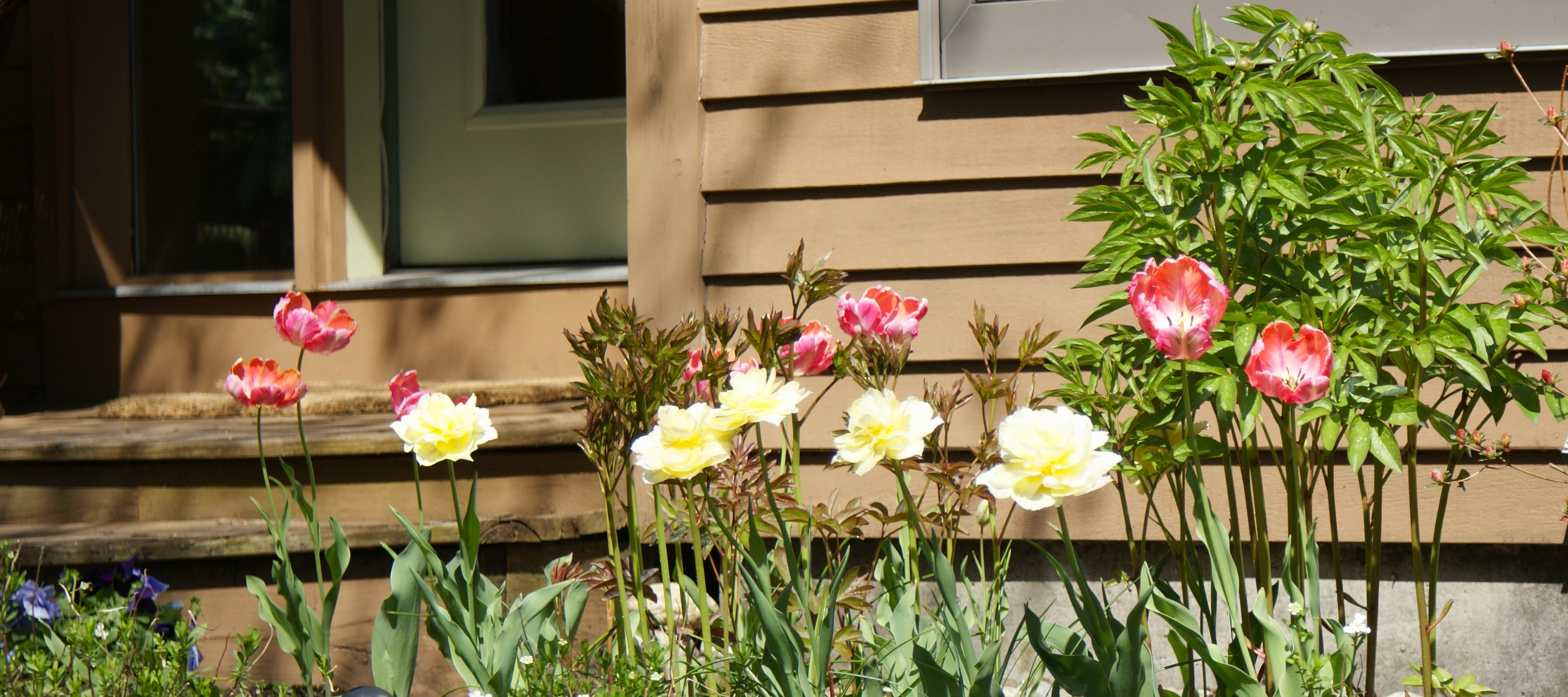 We were greeted by brash red tulips when we return from a trip over April vacation. It was a trip that alternated between doing fun things, seeing old friends, eating great food and being glued to screens as we watched in morbid fascination the events after the Boston Marathon Bombings. Looking at the red tulips at home, I remembered that it was after September 11, 2001, that I began gardening in earnest. It was a hot, dry, fall that year, as if the clouds had been chased away by the smoke from New York. I realized that I had spent those first years in our home inside with babies and toddlers and that now they were old enough that I could spent a few of our outdoor minutes – very few – away from the swing set and sandbox. As I planted bulbs that October – hoping against hope that the right end of them was pointing up – a neighbor strolled up and asked what I was doing. My answer surprised even me. I told him that everything I had done to make that house a home was on the inside. After renting for so many years, I felt I had been holding back on the idea of putting down roots in this place. But September 11 had told me to embrace the life we have and the place we have chosen, however temporary. Planting bulbs was a way of taking ownership of this life and my role in it. The bulbs I planted that day? Red tulips.