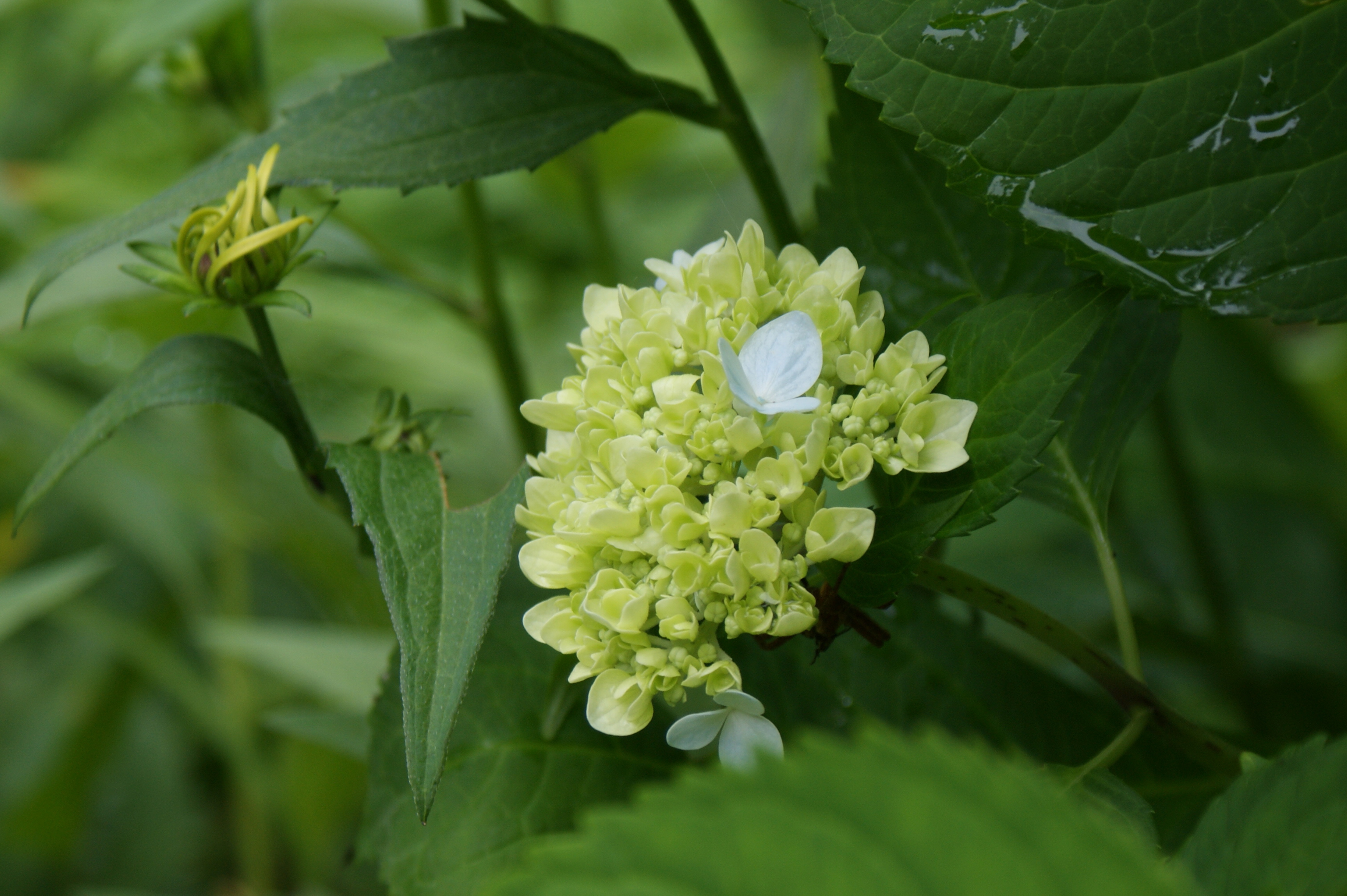 Not everything is growing like gangbusters. The hydrangea has been giving us fits, because it is bigger than ever but not blooming like everyone else’s. After much consulting and cajoling and applying copious amounts of water, fertilizer and coffee grounds, it finally squeaked out some blossoms. I did so many things I have no idea which, if any, of them, did the trick. The blooms are beautiful at every stage and they last for so long, changing slowly from green to white to blue.